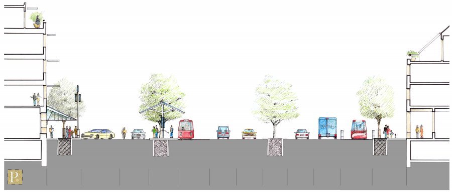 During the charrette, a corridor study identified a number of focal points for redevelopment. These focal points were identified as established mixed use redevelopment centres and consisted of several neighbourhood centres (local, less intense) and two urban centres (regional, more intense). Each is envisioned to have a professionally-led charrette to identify a vision and implementation strategy for redevelopment. The results of this charrette and a subsequent charrette formed the foundation for a technical report completed by the University team, which received a prestigious Charter Award from the Congress for the New Urbanism in 2005.