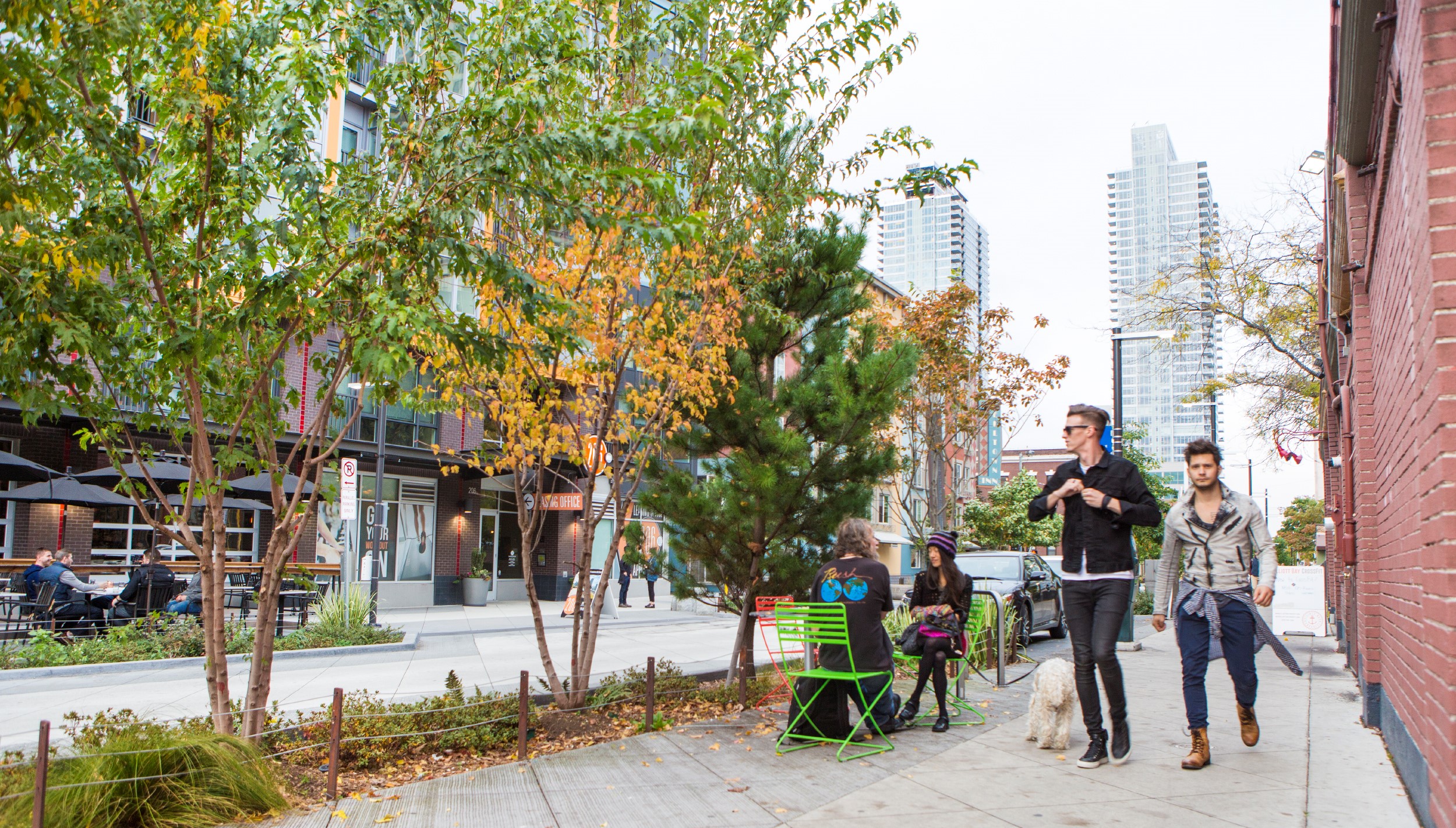 A walkable green street in Seattle (photo courtesy of deeproot Green Infrastructure. Click for original.)